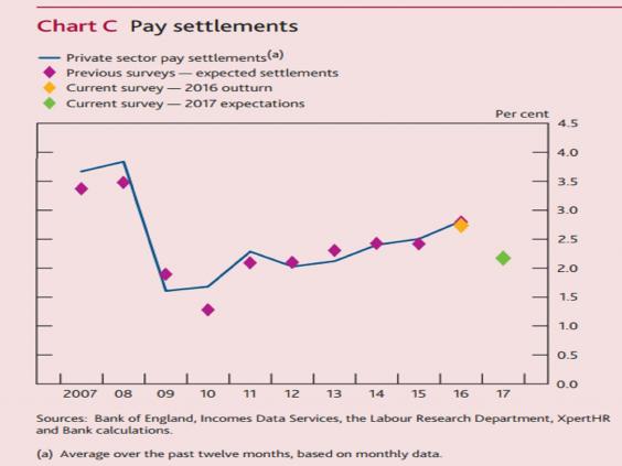 It also reported that that number of pay awards worth between 3 and 4 per cent (which were the average before the financial crisis) are expected by employers to fall "significantly".