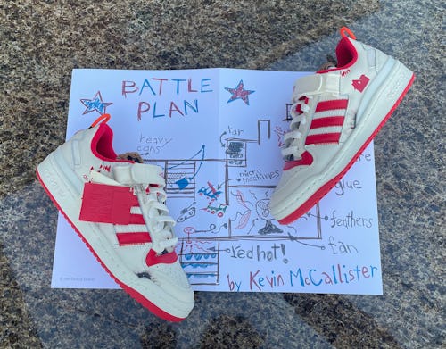 Filled with Home Alone references, the Forum Lows are sure to please even die-hard fans of the film, without going over the top. Featuring a cream base and red accents, the shoes memorialize Kevin’s own Forums in the movie, while burn marks near the front of the sneakers allude to his fiery feud with Wet Bandits Harry and Marv — which luckily enough, didn’t “burn down the joint,” as McCallister puts it.