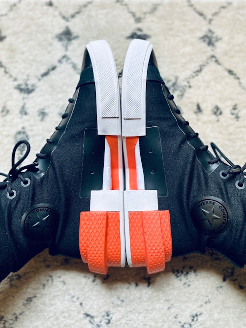 My first thought when I put on the Disrupts was how easy it was to slide my feet in them. Those of you who have worn the old-school Chuck Taylors know the struggle it is to get those on, especially with the high-tops. Thankfully, that's not the case with the 2020 version, and that's the problem Converse was trying to solve with its CX stretch canvas. Taking them off was an easy task, too, and that's definitely I detail I appreciated instantly.