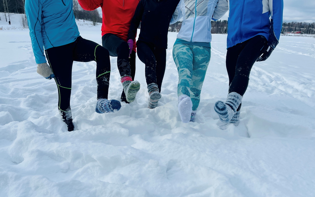 Parviainen recommends wearing at least two, preferably three, pairs of woollen socks to get the most out of the run.