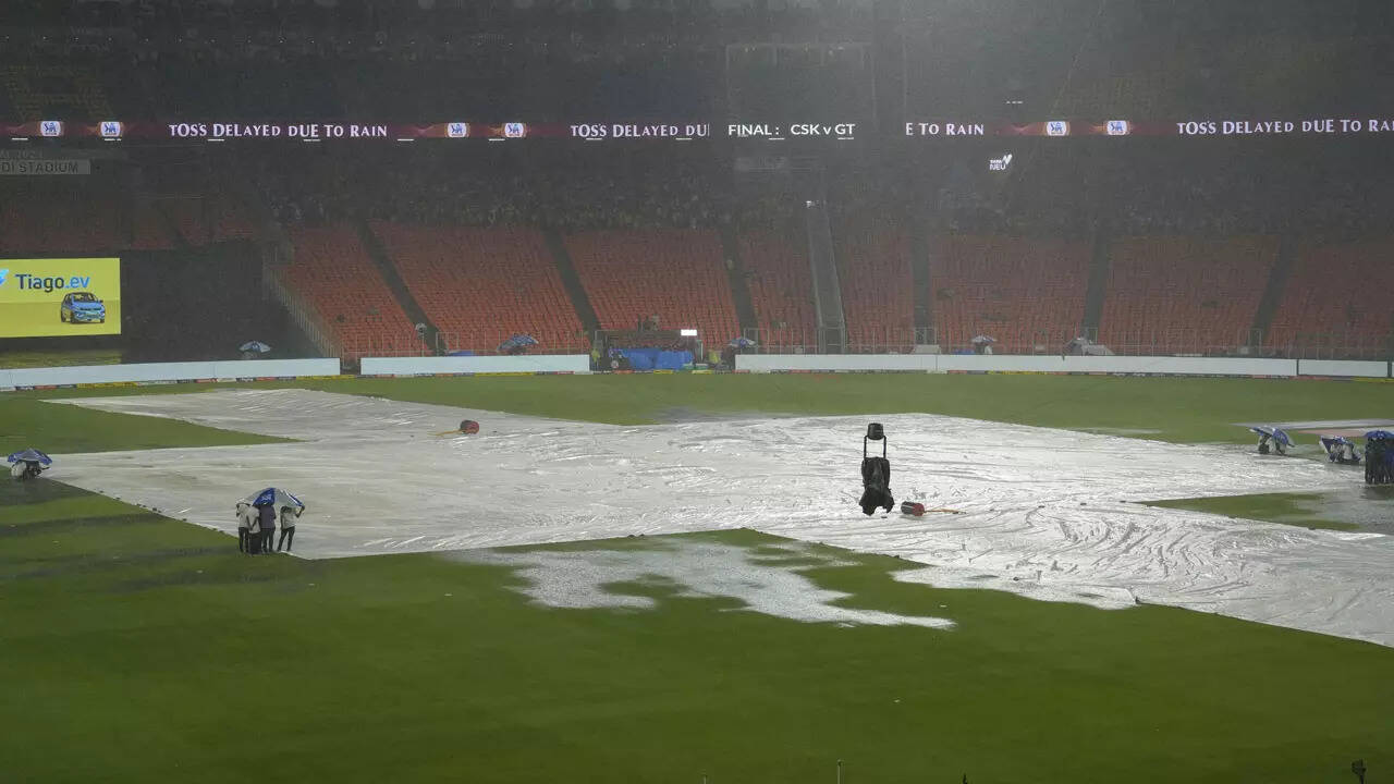 The Ahmedabad weather forecast for the evening of May 29, the reserve day for the IPL 2023 final between Chennai Super Kings and Gujarat Titans, is slightly better than the downpour that the Narendra Modi Stadium witnessed on Sunday, when the wet conditions didn't allow even the toss to happen.