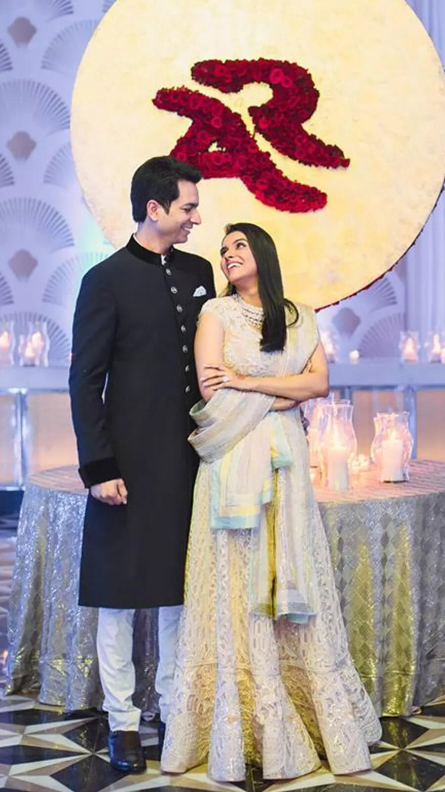 Rahul and Asin twinning with their shining outfits.