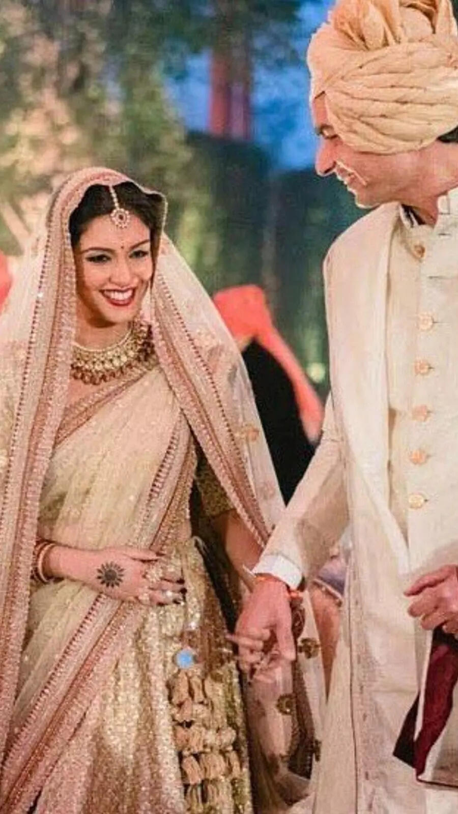 Rahul Sharma and Asin look amazing together as they hold hands and walk down the aisle.