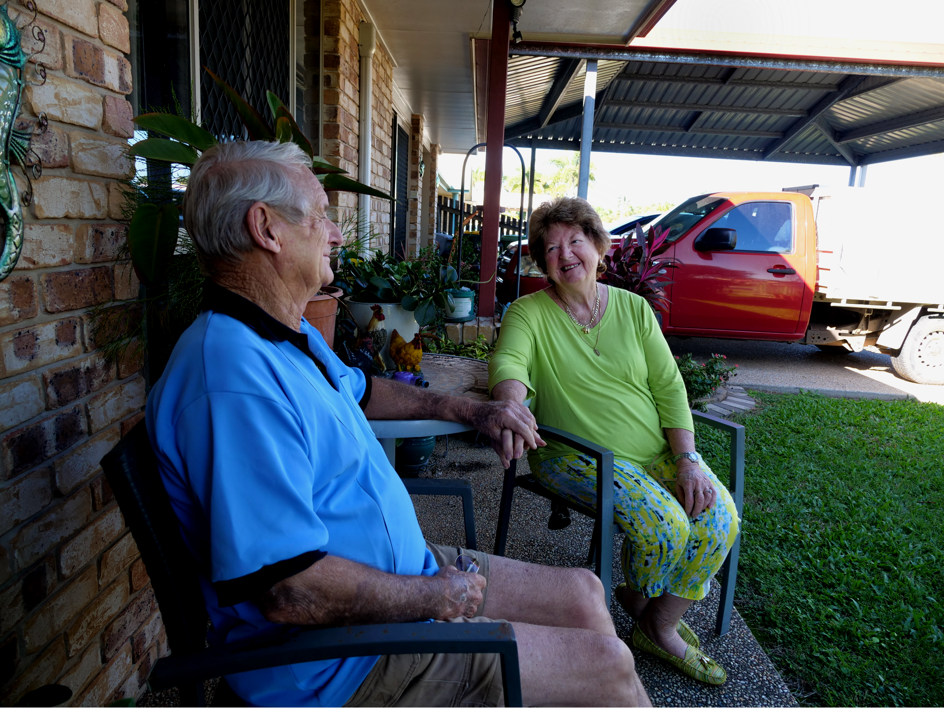 As Ross Moore and Helen Hewitt sit in the back garden of their North Queensland home, they share a quiet chuckle when asked about their engagement.