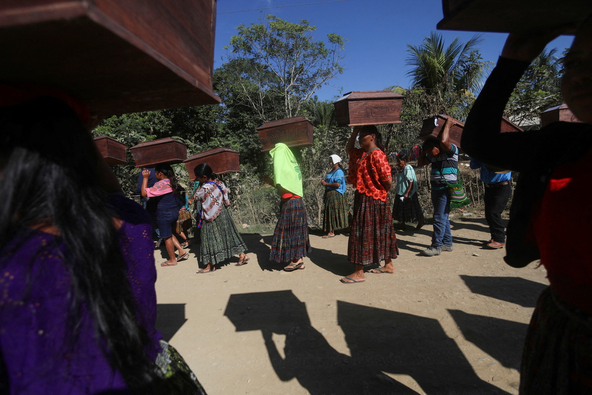 Mourners from the Maya q'eqchi community gathered in a small Catholic church in the Guatemalan hamlet of Sepur Zarco, about 125 miles (200 km) northeast of the nation's capital. Then they walked in a solemn procession, many hoisting the coffins above their heads, before placing them in a recently constructed mausoleum designed to keep their memories alive.