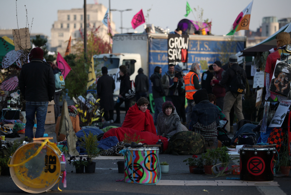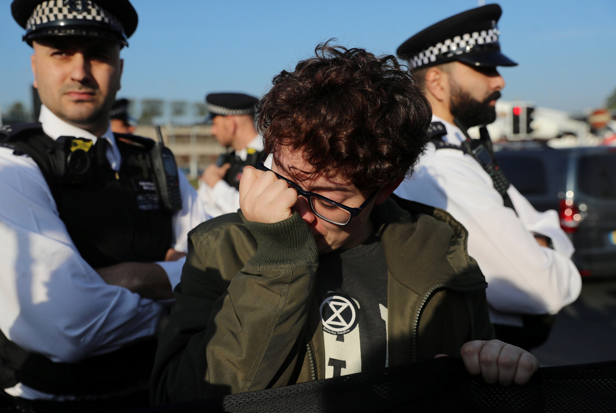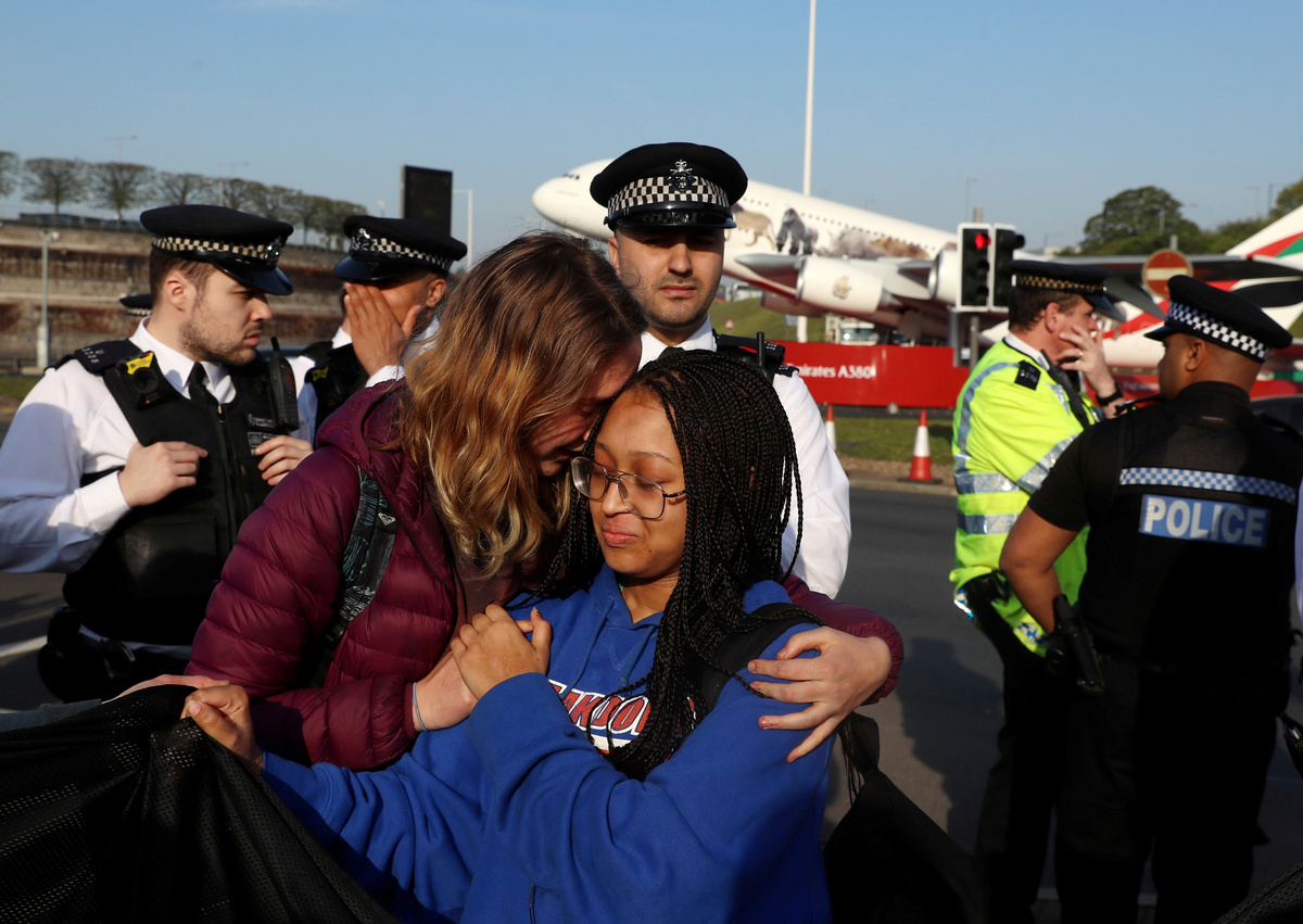 Actor Emma Thompson takes part in the Extinction Rebellion protest at Oxford Circus in London, Britain April 19, 2019. REUTERS/Hannah McKayActor Emma Thompson takes part in the Extinction Rebellion protest at Oxford Circus in London, Britain April 19, 2019. REUTERS/Hannah McKayA climate change activist reacts during an Extinction Rebellion protest outside Heathrow Airport in London, Britain April 19, 2019. REUTERS/Simon DawsonClimate change activists are seen during an Extinction Rebellion protest at Waterloo Bridge in London, Britain April 19, 2019. REUTERS/Hannah McKayClimate change activists react during an Extinction Rebellion protest outside Heathrow Airport in London, Britain April 19, 2019. REUTERS/Simon DawsonA climate change activist reacts during an Extinction Rebellion protest outside Heathrow Airport in London, Britain April 19, 2019. REUTERS/Simon DawsonPolice officers are seen during a protest during an Extinction Rebellion protest at Waterloo Bridge in London, Britain April 19, 2019. REUTERS/Hannah McKayA climate change activist is seen inside a tent during an Extinction Rebellion protest at Waterloo Bridge in London, Britain April 19, 2019. REUTERS/Hannah McKayA climate change activist attends an Extinction Rebellion protest at Waterloo Bridge in London, Britain April 19, 2019. REUTERS/Hannah McKayClimate change activists attend an Extinction Rebellion protest at Waterloo Bridge in London, Britain April 19, 2019. REUTERS/Hannah McKayAn Extinction Rebellion banner hangs on the Waterloo Bridge during an Extinction Rebellion protest in London, Britain April 19, 2019. REUTERS/Hannah McKayClimate change activists are seen on the Waterloo Bridge during an Extinction Rebellion protest in London, Britain April 19, 2019. REUTERS/Hannah McKay