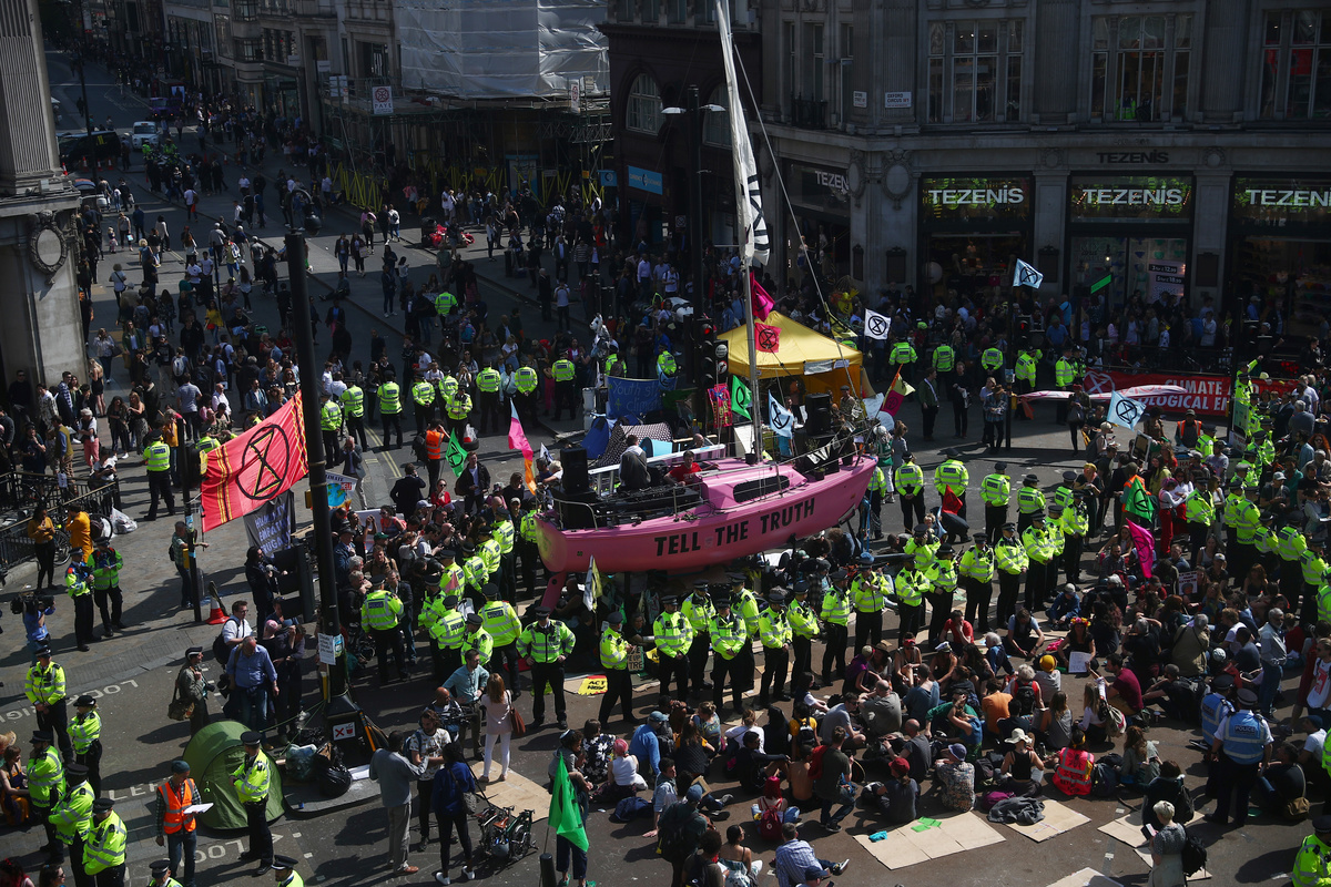 Organizers Extinction Rebellion have called for non-violent civil disobedience to force the British government to reduce net greenhouse gas emissions to zero by 2025 and stop what they call a global climate crisis.