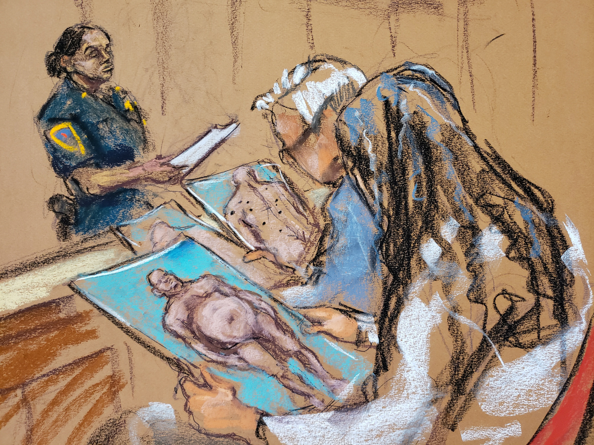 A sketch artist hired by Reuters saw a couple of the naked photos when they were passed to the jury and produced a drawing for the news agency. In the courtroom, prosecutors did not say why the photographs were introduced or how many were presented.