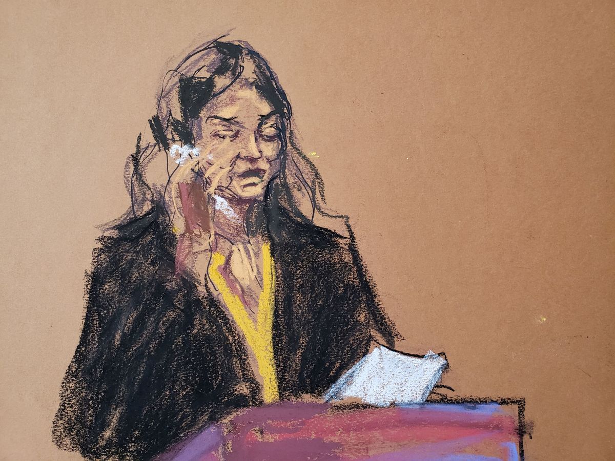Harvey Weinstein watches as Jessica Mann makes a statement during the sentencing following his conviction on sexual assault and rape charges in the Manhattan borough of New York City, New York, U.S. March 11, 2020 in this courtroom sketch. REUTERS/Jane Rosenberg