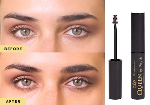 Cruelty-Free Eyebrow Tint Gel and Brow Filler: Elizabeth Mott Queen of the Fill Tinted Gel Makeup with Brush to Fill In Eyebrows and Cover Gray Hairs - Dark Medium Brown, 4g