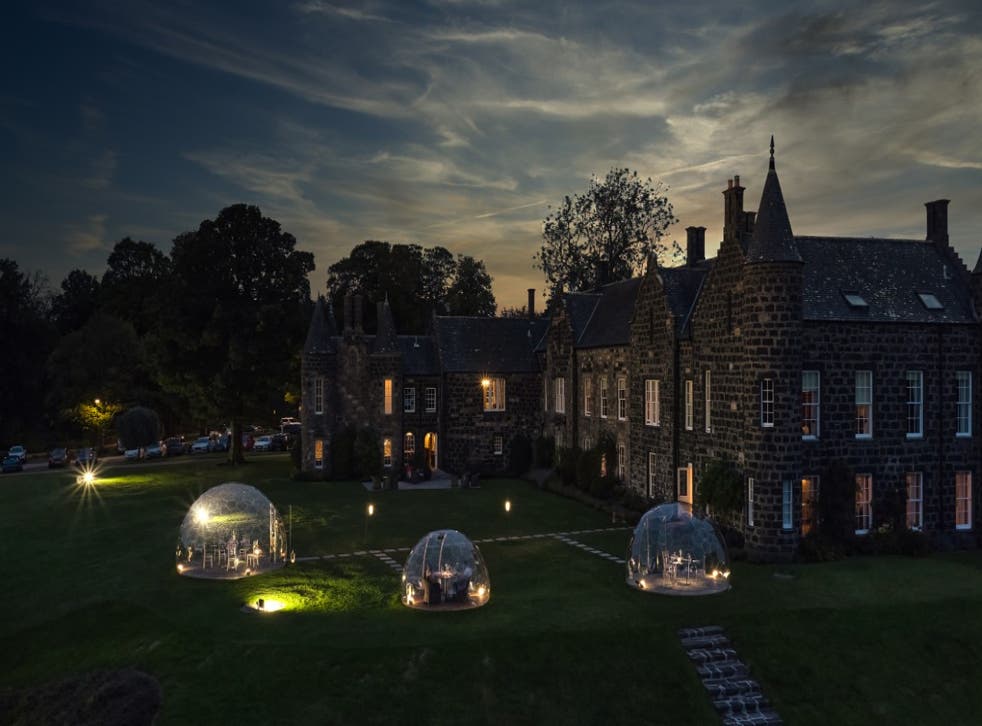 In times of Covid, Meldrum House’s Barbarella-esque outdoor restaurant domes light up the night sky and create an intimate dining experience.