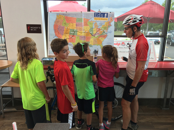 The co-owner of 11 Wendy's restaurants, Anderson has long supported the Dave Thomas Foundation for Adoption, named for and established by the Wendy's founder to increase the number of adoptions of kids from foster homes. By riding across the country, Anderson could encourage people to donate to the foundation, he predicted. So far, $340,000 has been raised, and the money is still rolling in.
