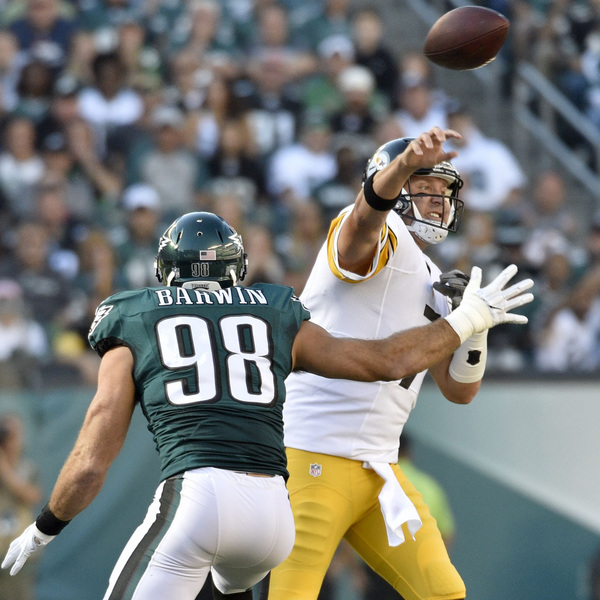 Wentz finished 23 for 31 for 301 yards and two touchdowns and still has not turned the ball over this season. The leading receiver was Darren Sproles, who caught 6 passes for 128 yards and a TD. It helps to have defensive coordinator Jim Schwartz, whose unit limited Ben Roethlisberger to 24-for-44 passing for 257 yards with one interception and sacked him four times.