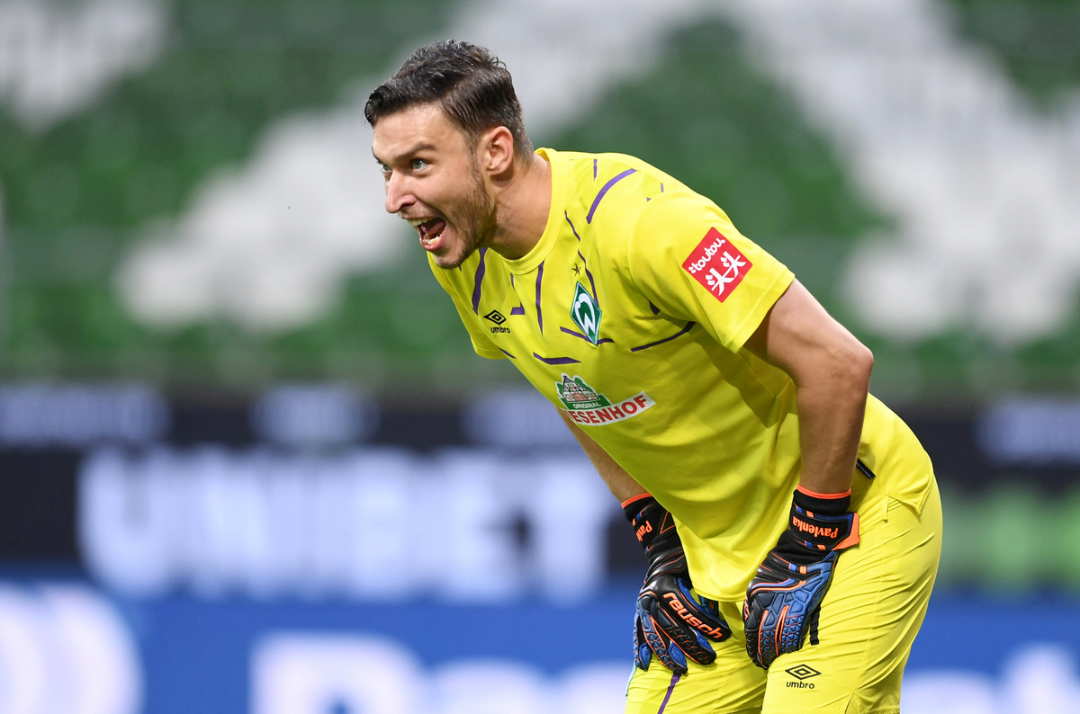 Soccer Football - Bundesliga - Relegation Playoff 1st Leg - Werder Bremen v Heidenheim - Weser-Stadion, Bremen, Germany - July 2, 2020 Werder Bremen's Jiri Pavlenka reacts, as play resumes behind closed doors following the outbreak of the coronavirus disease (COVID-19) Carmen Jaspersen/Pool via REUTERS
