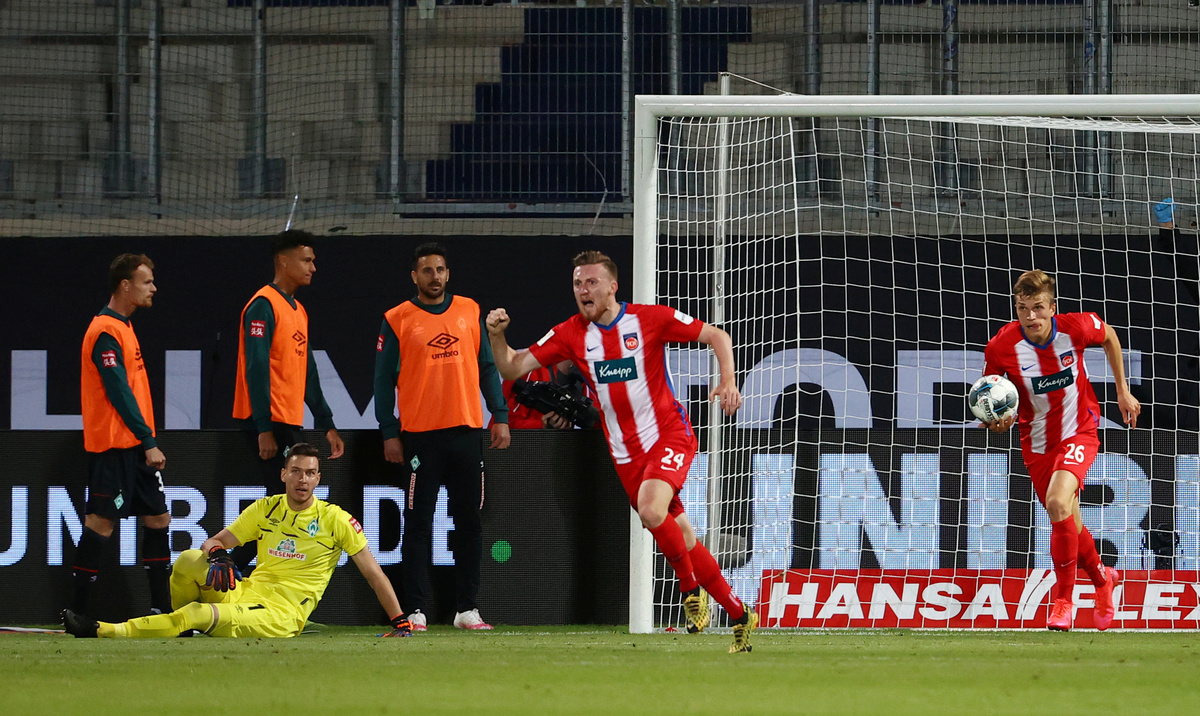 Heidenheim still needed to score a second to win promotion but as they pushed forward, they were caught out by a mazy run from Fin Bartels who set up Augustinsson to put Werder back ahead four minutes into stoppage time.