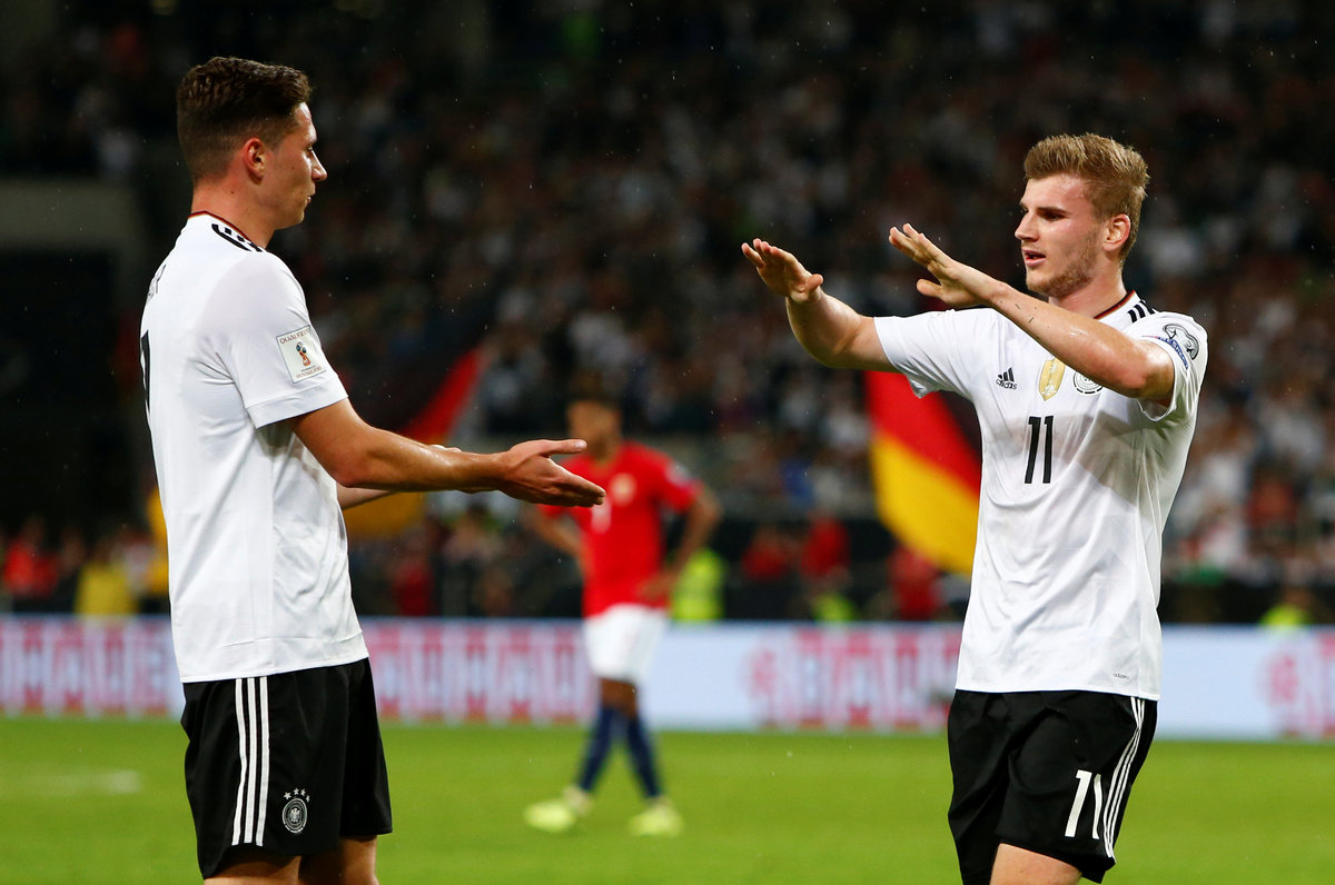 The RB Leipzig forward, whose speed and versatility up front has given Germany far more options, has muscled his way into the team and his two goals in their 6-0 rout of Norway on Monday further tightened his hold on the spot.