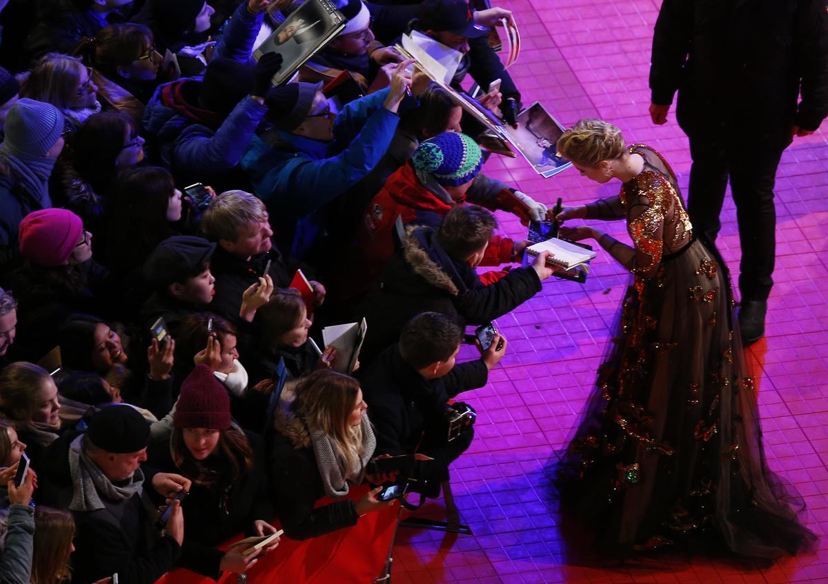 Actresses Greta Gerwig signs autograps upon arrival for the screening of the movie Isle of dogs at the 68th Berlin International Film Festival Berlinale in Berlin,Germany, February 15, 2018. REUTERS/Christian Mang