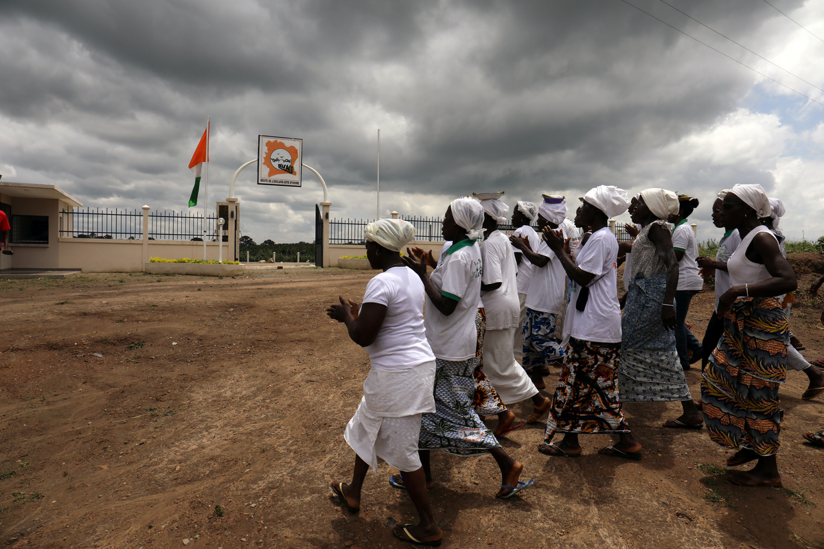 Women in procession dance outside a slavery memorial site near the Bodo river in Kanga Nianze village, in Tiassale, Ivory Coast, July 21, 2019. REUTERS/Luc Gnago