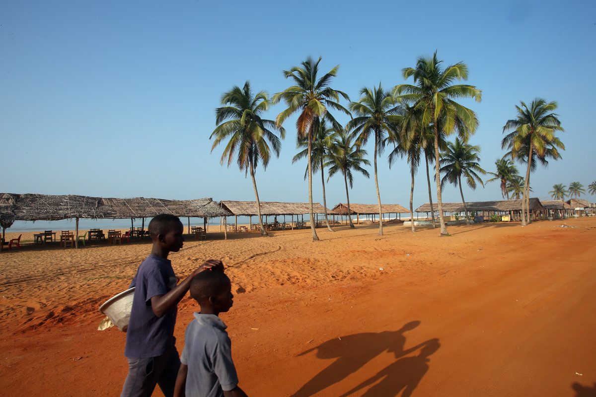Two people walk along the route taken by slaves to the "point of no return" , from where they were shipped west, at the historic slave port of Badagry, Nigeria June 21, 2019. REUTERS/Afolabi Sotunde