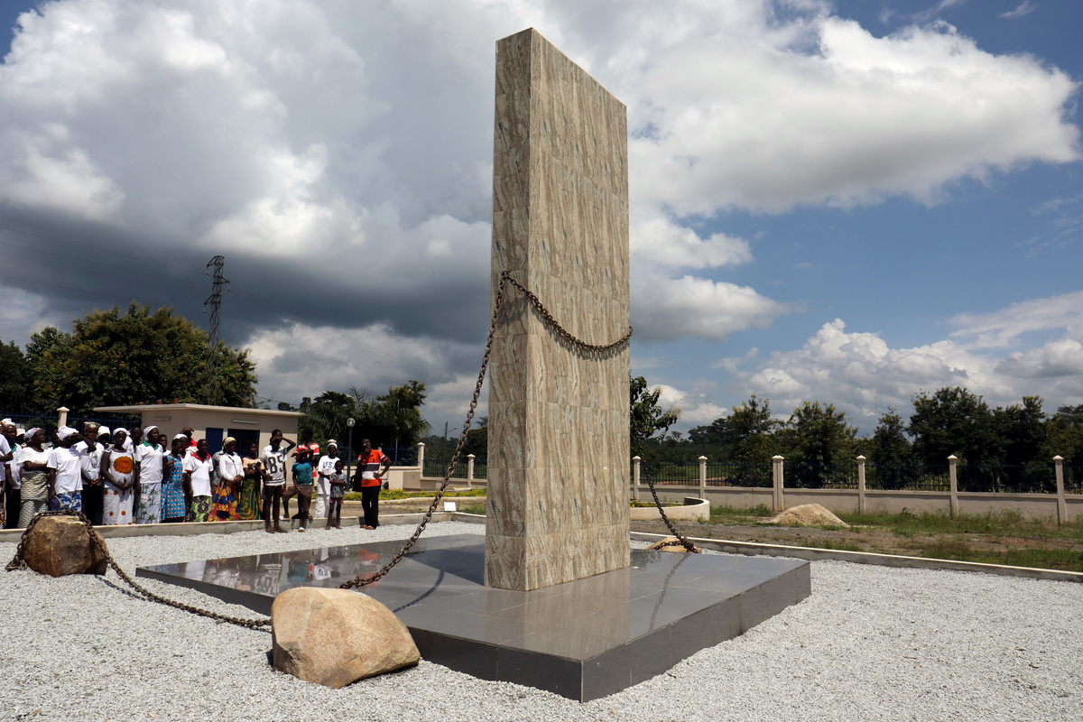 Detail of an illustration of lines of chained slaves walking towards a ship is seen at a monument at the site of the 'Point of No Return' in the historic slave port of Ouidah, Benin, July 17, 2019. REUTERS/Afolabi SotundeEmmanuel Mouti Dongo from Cameroon visits the “Maison Des Esclaves” slave house on Goree Island off the coast of Dakar, Senegal, July 7, 2019. REUTERS/Zohra BensemraRuins are seen on Kunta Kinteh island in the Gambia River, Jufureh near Albreda, Gambia, July 20, 2019. REUTERS/Zohra BensemraA general view of Goree Island is seen off the coast of Dakar, Senegal, July 8, 2019. REUTERS/Zohra BensemraFishermen are pictured in front of Goree Island off the coast of Dakar, Senegal, July 7, 2019. REUTERS/Zohra BensemraA canon is seen at an old fort in the historic slave port of Ouidah, Benin, July 17, 2019. Picture taken July 17, 2019. REUTERS/Afolabi SotundeA boy stands beside the Bodo river in Kanga Nianze village, built on a former slave route, near Tiassale, Ivory Coast, July 15, 2019. Men and women captured in Ivory Coast and sold into slavery 400 years ago would take their final bath in the river before being loaded onto ships. . REUTERS/Luc GnagoVisitors walk past buildings during their tour of the Da-Silva slavery museum, in Porto Novo, Benin July 16, 2019., Benin. REUTERS/Afolabi SotundeOpen gates are seen before a monument at the site of the 'Point of No Return' where slaves were loaded onto ships in the historic slave port of Ouidah, Benin July 17, 2019. . REUTERS/Afolabi SotundeCape Town's Treaty Tree under which slaves were sold in colonial times is seen in Cape Town, South Africa, June 13, 2019. The tree a milkwood is believed to be 500 years old and was originally located on a beach which has long since disappeared as the city reclaimed land from the sea for the expansion of it's port. REUTERS/Mike HutchingsA boy is pictured at Goree Island off the coast of Dakar, Senegal, July 8, 2019. ÊGoree island, was one of the trans-Atlantic slave-trade gathering points from where slaves were shipped west in the 1700s and 1800 and today is UNESCO world heritage site. REUTERS/Zohra BensemraCanons are seen at the Cape Coast Castle, one of several slave forts build along the Gold Coast in Ghana, July 28, 2019. Picture taken July 28,2019. REUTERS/Siphiwe SibekoVisitors walk though dungeons used to house female slaves at the Cape Coast Castle, one of several slave forts build along the Gold Coast in Ghana, July 28, 2019. REUTERS/Siphiwe SibekoPrince Tete and his friend Coudjoe stand at a point where it is believed slaves once crossed the River Pra on their journey to the coast, at Assin Praso, Ghana, July 23, 2019. REUTERS/Siphiwe SibekoYoung boys walk along a beach where slaves were once loaded onto ships in the historic slave port of Ouidah, Benin July 18, 2019. REUTERS/Afolabi SotundePeople stand beside a memorial beside the Bodo river in Kanga Nianze village, built on a former slave route, near Tiassale, Ivory Coast, July 21, 2019. Men and women captured in Ivory Coast and sold into slavery 400 years ago would take their final bath in the river before being loaded onto ships. REUTERS/Luc GnagoScars are seen on the trunk of a tree under which slaves were sold in colonial times, in Cape Town, South Africa, August 28, 2019. The tree a milkwood is believed to be 500 years old and was originally located on a beach which has long since disappeared as the city reclaimed land from the sea for the expansion of it's port. REUTERS/Mike HutchingsA commenorative building that is known locally as 'The Tunnel' is seen near the 'Point of No Return' from where slaves were shipped from the historic slave port at Badagry, Nigeria. June 21, 2019. REUTERS/Afolabi SotundeA man takes a photo beneath the monument at the site of the 'Point of No Return' where slaves were loaded onto ships in the historic slave port of Ouidah, Benin July 17, 2019. REUTERS/Afolabi SotundeA shrine is seen on a beach where thousands of African slaves were once loaded onto ships in the historic slave port of Ouidah, Benin, July 17, 2019. REUTERS/Afolabi SotundeA pulley hangs over a well at the Old English fort which once housed a now defunct slavery museum in the historic slave port of Ouidah, Benin, July 17, 2019. REUTERS/Afolabi SotundeAbdoulie Jabang,30, a boat captain who transport tourists to Kunta Kinte Island, leads his boat off as he leaves the island on the Gambia River, near Jufureh, Albreda, Gambia, July 20, 2019. Kunta Kinte island was a slavery shipping point and is now named after a Gambian man from Juffrey, who according to the Alex Haley's book, Roots:The Saga of an American Family, was among 98 slaves who were shipped to the United States in 1767. REUTERS/Zohra BensemraTourists are seen at the Cape Coast Castle one of several slave forts build along the Gold Coast in Ghana, July 28, 2019. REUTERS/Siphiwe SibekoA girl walks past buildings at the Seriki Abass Slave Museum in the slave port at Badagry, Nigeria, June 19, 2019. REUTERS/Afollabi Sotunde Scars are seen on the trunk of a tree under which slaves were sold in colonial times, in Cape Town, South Africa, June 21, 2019. The tree a milkwood is believed to be 500 years old and was originally located on a beach which has long since disappeared as the city reclaimed land from the sea for the expansion of it's port. REUTERS/Mike Hutchings