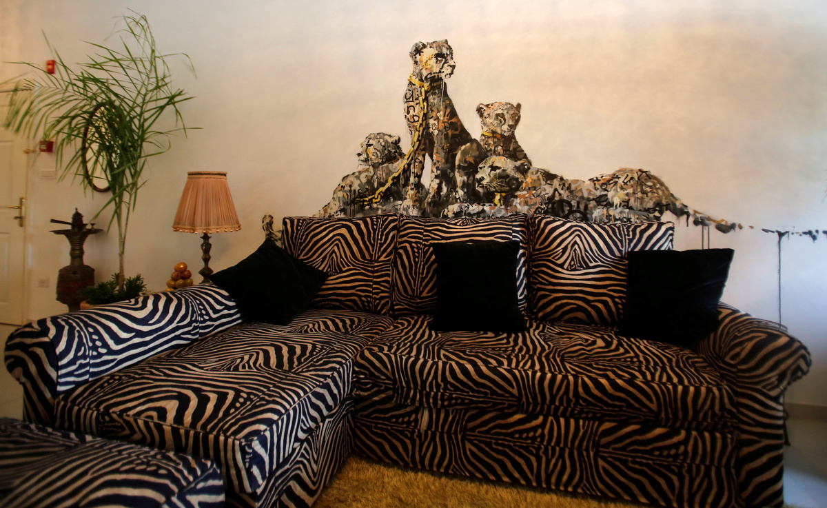 BETHLEHEM, West Bank (Reuters) - Guests at the Walled Off Hotel in the occupied West Bank town of Bethlehem on Tuesday admired the works of British street artist Banksy, whose wall paintings and other works adorn the establishment.