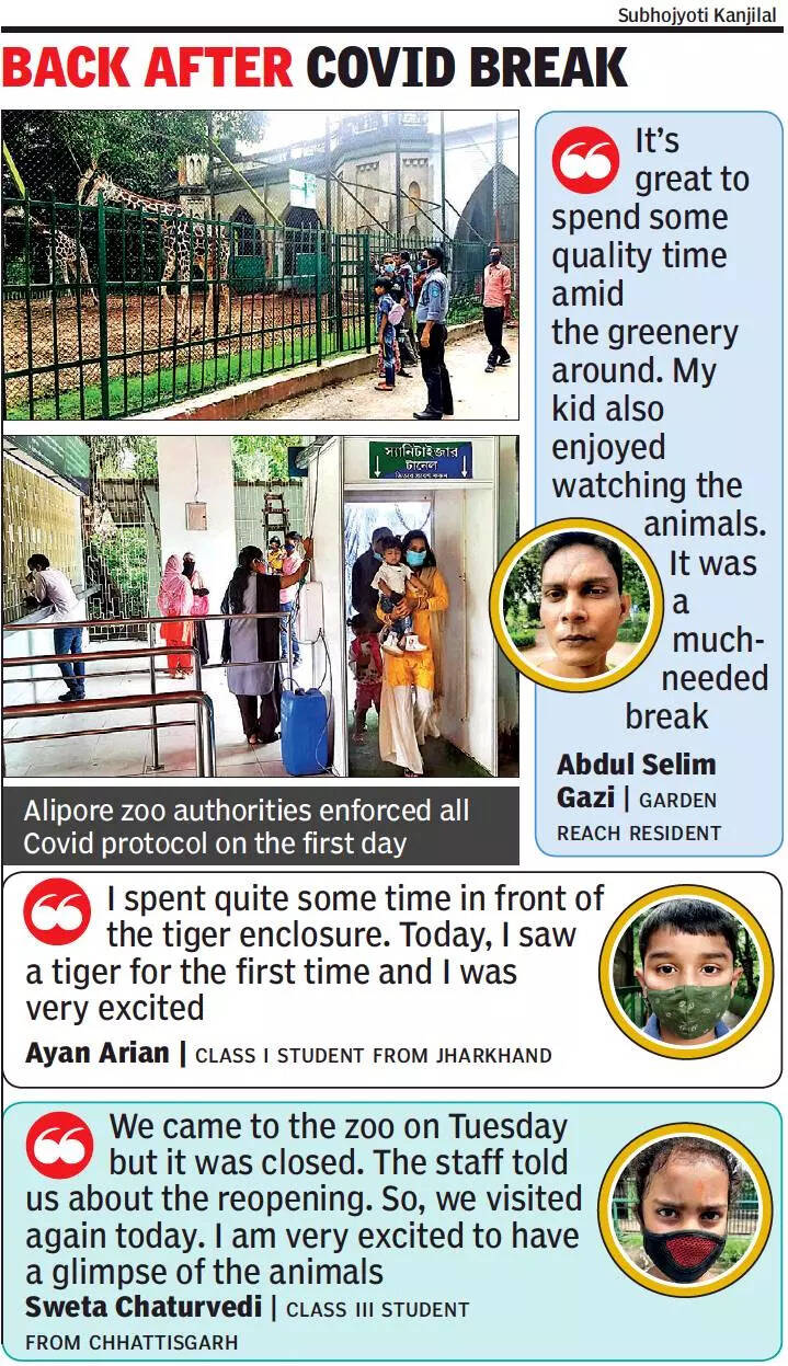 KOLKATA: Alipore zoo, along with other zoos in the state, deer parks and Siliguri’s Bengal Safari, reopened after more than five months on Wednesday, following the Covid second-wave break.