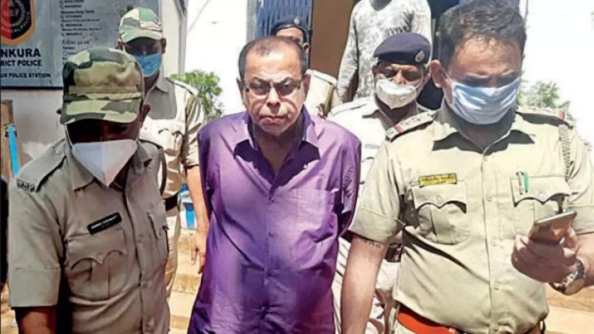 Bihsnupur SDO Anup Kumar Nanda had filed a complaint with police for irregularities in the tender process during Mukherjee’s tenure as chairman. “We came to know about defalcation of Rs 9.9 cr. He was arrested as he failed to answer us properly. He was sent to court praying for police custody,” Sarkar said. A local court remanded him in police custody for four days. The SP said Mukherjee has been charged under Sec 404 (dishonest misappropriation), 409 (criminal breach of trust) and 420 (cheating) of IPC.