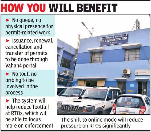 KOLKATA: The state transport department is all set for a complete switch to online registration of vehicles and issuance, renewal and transfer of permits. The system is scheduled to be operational from December 1.