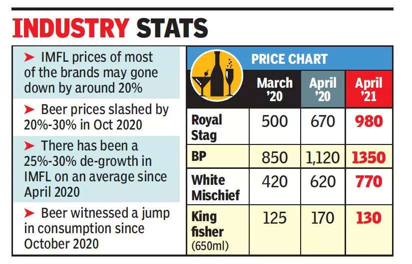 KOLKATA: Tipplers may have a reason to cheer before festive season. The price of India Made Foreign Liquor (IMFL) in the state is likely to come down by 20% across the board from the third week of September. The price of beer may change marginally from either side.