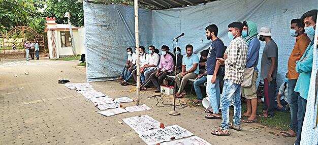 A makeshift tent erected on Friday night was turned into a bigger pandal to accommodate more students and Visva Bharati University Faculty Association (VBUFA)-linked teachers, who have supported the stir. Security arrangements were beefed up at ‘Purbita’, the VC’s official residence.
