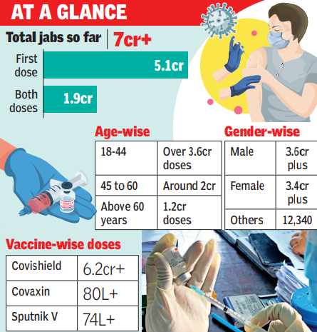 KOLKATA: Bengal hit the 7-crore jab mark on Friday, crossing the half-way mark of administering 14 crore doses to completely vaccinate the state’s eligible adult population.
