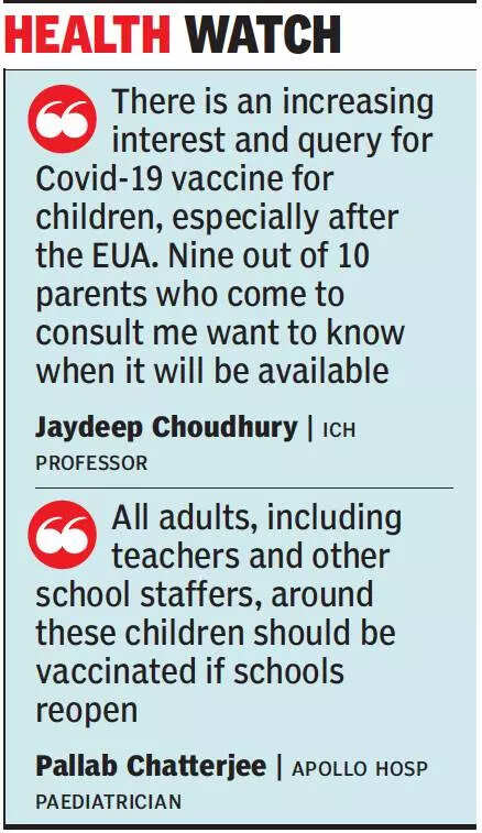 KOLKATA: Even as the first approved Covid-19 vaccine for children in India is unlikely to be rolled out before October, doctors are already flooded with queries from anxious parents. A week ago, the home-grown vaccine — ZyCov-D — got emergency use authorisation (EUA) in India for children above 12 years of age.