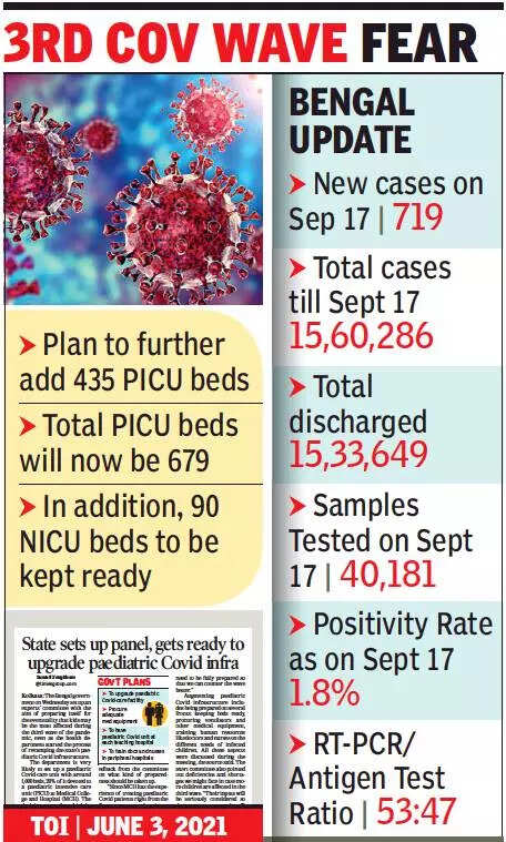 KOLKATA: The state health department has decided to increase the number of PICU (paediatric intensive care unit) beds further before the possible third wave. Earlier, the department had sanctioned 244 PICU beds across 21 hospitals. Health officials now have decided to augment the paediatric Covid-19 facilities by adding 435 more PICU beds, almost double of what had been initially planned.