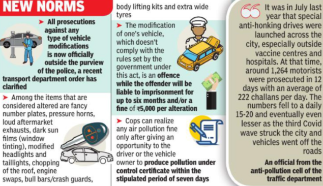 "All unauthorized alterations by either the manufacturer/ dealer or the owner will be handled by officers of the transport department, not below the level of motor vehicle inspectors who are only empowered to deal with such offences," an order from Rajesh Kumar Sinha, principal secretary (transport) has clarified.