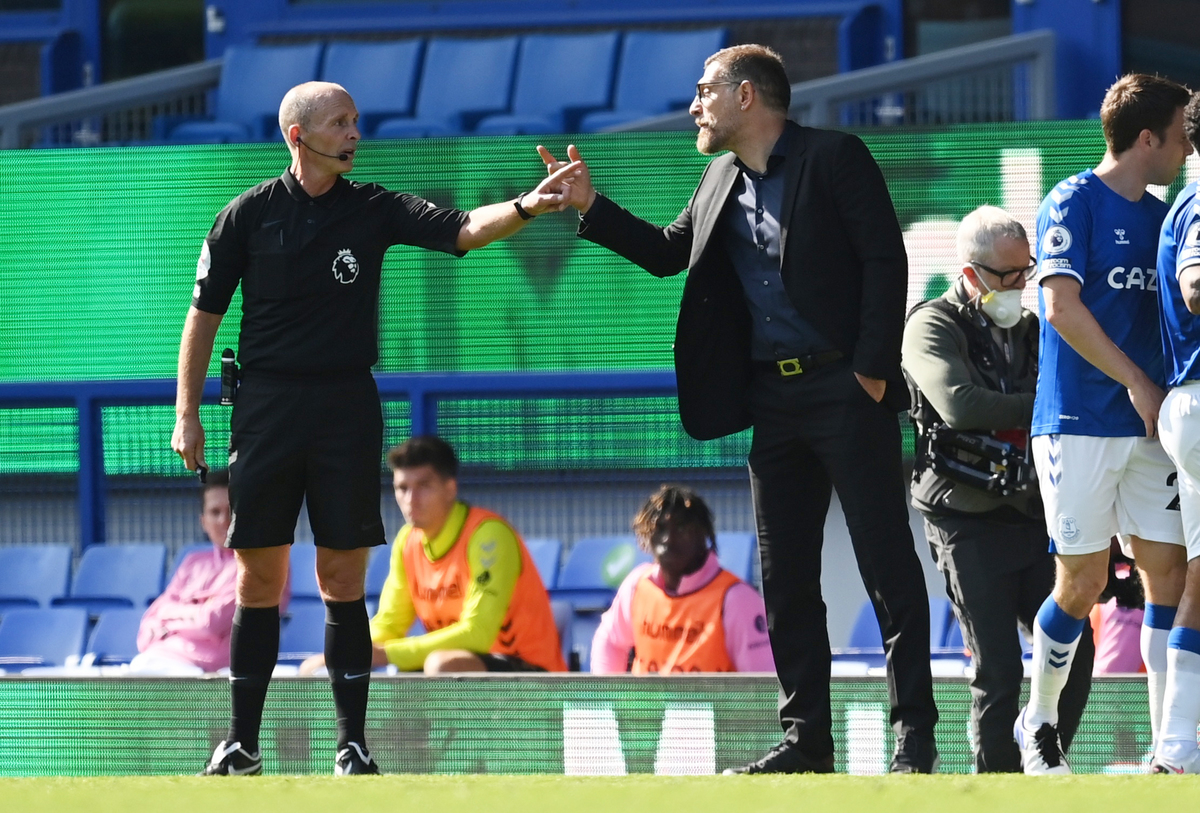 Bilic, 52, was shown a red card by referee Mike Dean for his vehement complaints at halftime after defender Kieran Gibbs was sent off for pushing Everton's James Rodriguez in the face.
