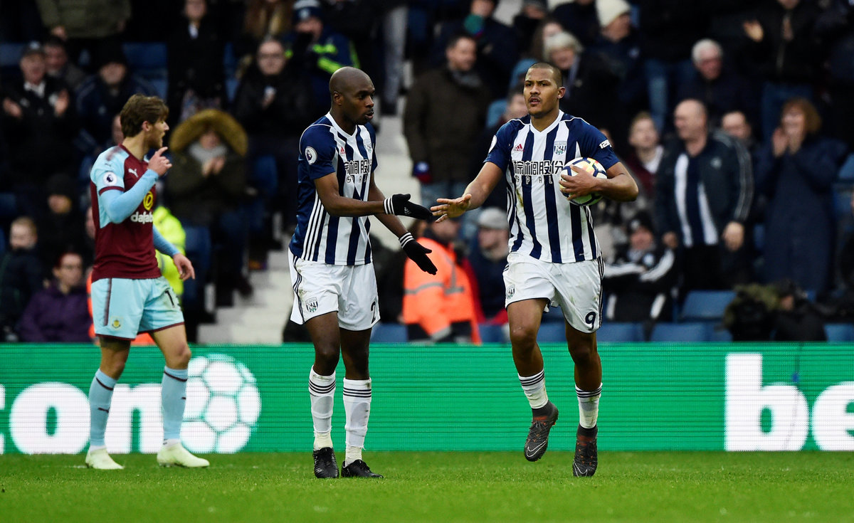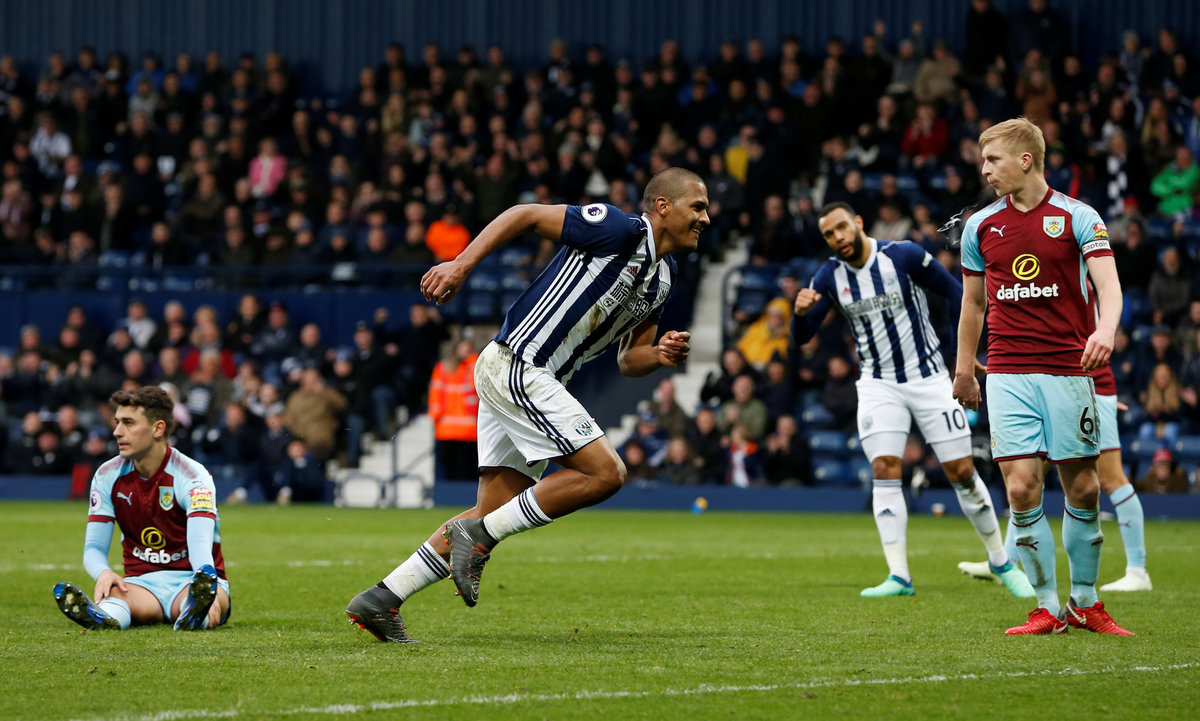Soccer Football - Premier League - West Bromwich Albion vs Burnley - The Hawthorns, West Bromwich, Britain - March 31, 2018 West Bromwich Albion's Salomon Rondon celebrates with Allan Nyom after scoring their first goal REUTERS/Rebecca Naden Soccer Football - Premier League - West Bromwich Albion vs Burnley - The Hawthorns, West Bromwich, Britain - March 31, 2018 Burnley's Chris Wood celebrates with Matthew Lowton in front of their fans after scoring their second goal Action Images via Reuters/Ed SykesSoccer Football - Premier League - West Bromwich Albion vs Burnley - The Hawthorns, West Bromwich, Britain - March 31, 2018 West Bromwich Albion's Salomon Rondon celebrates scoring their first goal Action Images via Reuters/Ed SykesSoccer Football - Premier League - West Bromwich Albion vs Burnley - The Hawthorns, West Bromwich, Britain - March 31, 2018 West Bromwich Albion's Jonny Evans and Burnley's Sam Vokes react REUTERS/Rebecca NadenSoccer Football - Premier League - West Bromwich Albion vs Burnley - The Hawthorns, West Bromwich, Britain - March 31, 2018 Burnley's Ben Mee applauds their fans after the match REUTERS/Rebecca Naden Soccer Football - Premier League - West Bromwich Albion vs Burnley - The Hawthorns, West Bromwich, Britain - March 31, 2018 Burnley's Ashley Barnes consoles West Bromwich Albion's Claudio Yacob after the match REUTERS/Rebecca NadenSoccer Football - Premier League - West Bromwich Albion vs Burnley - The Hawthorns, West Bromwich, Britain - March 31, 2018 West Bromwich Albion's Jake Livermore looks dejected after the match Action Images via Reuters/Ed SykesSoccer Football - Premier League - West Bromwich Albion vs Burnley - The Hawthorns, West Bromwich, Britain - March 31, 2018 West Bromwich Albion's Oliver Burke in action with Burnley's Jack Cork Action Images via Reuters/Ed Sykes