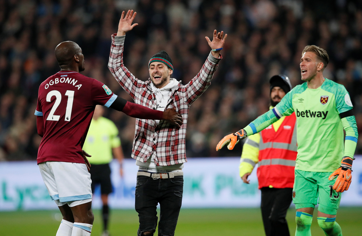 (Reuters) - West Ham United have issued lifetime bans on two supporters for invading the pitch at the London Stadium during their 3-1 League Cup defeat by Tottenham Hotspur on Wednesday.