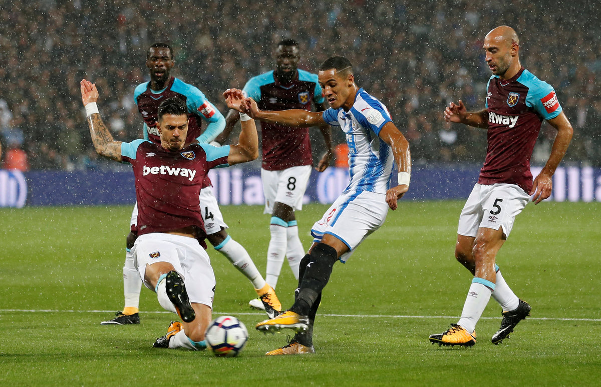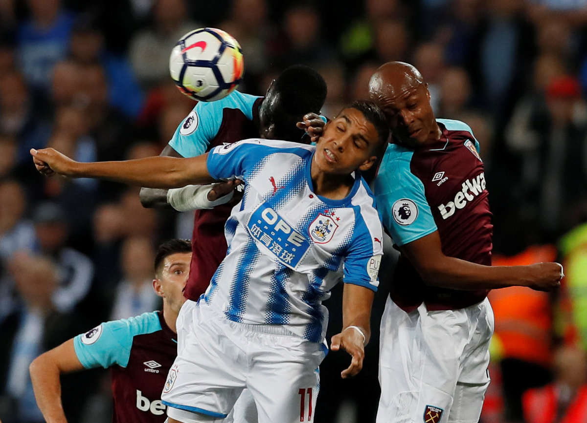 Soccer Football - Premier League - West Ham United vs Huddersfield Town - London, Britain - September 11, 2017 West Ham United's Andre Ayew celebrates scoring their second goal REUTERS/David Klein Soccer Football - Premier League - West Ham United vs Huddersfield Town - London, Britain - September 11, 2017 West Ham United's Andy Carroll in action Action Images via Reuters/John Sibley Soccer Football - Premier League - West Ham United vs Huddersfield Town - London, Britain - September 11, 2017 West Ham United's James Collins and Jose Fonte attempt to shoot at goal REUTERS/David KleinSoccer Football - Premier League - West Ham United vs Huddersfield Town - London, Britain - September 11, 2017 West Ham United's Pablo Zabaleta in action with Huddersfield Town’s Chris Lowe Action Images via Reuters/John Sibley Soccer Football - Premier League - West Ham United vs Huddersfield Town - London, Britain - September 11, 2017 West Ham United's Michail Antonio in action with Huddersfield Town’s Tommy Smith REUTERS/David Klein Soccer Football - Premier League - West Ham United vs Huddersfield Town - London, Britain - September 11, 2017 Huddersfield Town’s Tom Ince in action with West Ham United's Jose Fonte REUTERS/David Klein Soccer Football - Premier League - West Ham United vs Huddersfield Town - London, Britain - September 11, 2017 Huddersfield Town’s Tommy Smith in action with West Ham United's James Collins Action Images via Reuters/John Sibley .