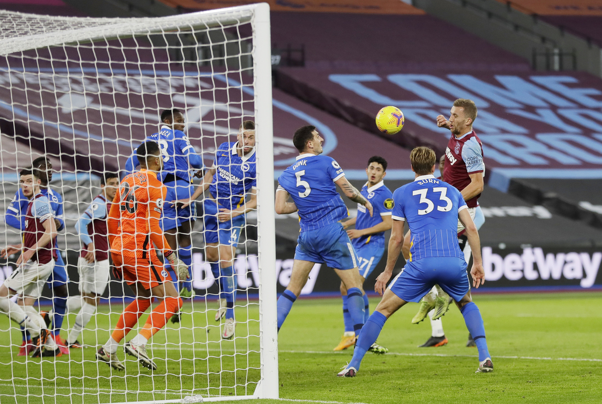 Ben Johnson and Tomas Soucek scored second-half goals as West Ham United twice came back from a goal down to earn a 2-2 draw at home to Brighton and Hove Albion in the Premier League on Sunday.