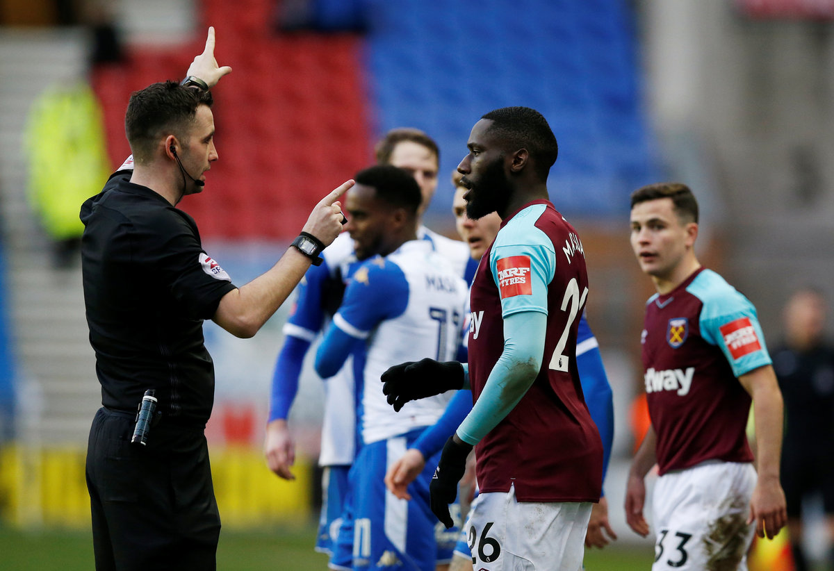 (Reuters) - West Ham United manager David Moyes described Arthur Masuaku's actions as "despicable" after the defender was shown a straight red card for spitting at Wigan Athletic midfielder Nick Powell in their FA Cup defeat on Saturday.