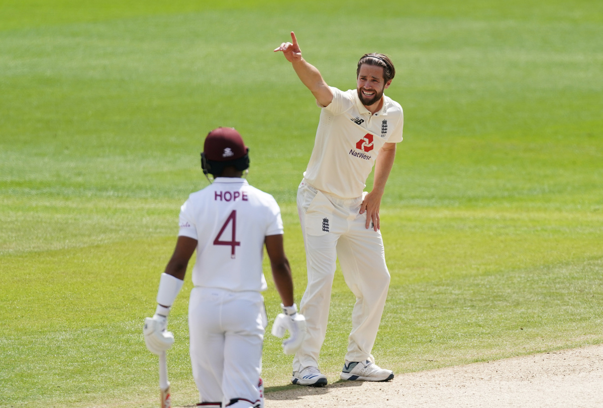 A half century from Roston Chase (51) ensured England would bat again before his resistance came to an end when Woakes rapped him on the pads before Shannon Gabriel was bowled out for the third duck in the innings.