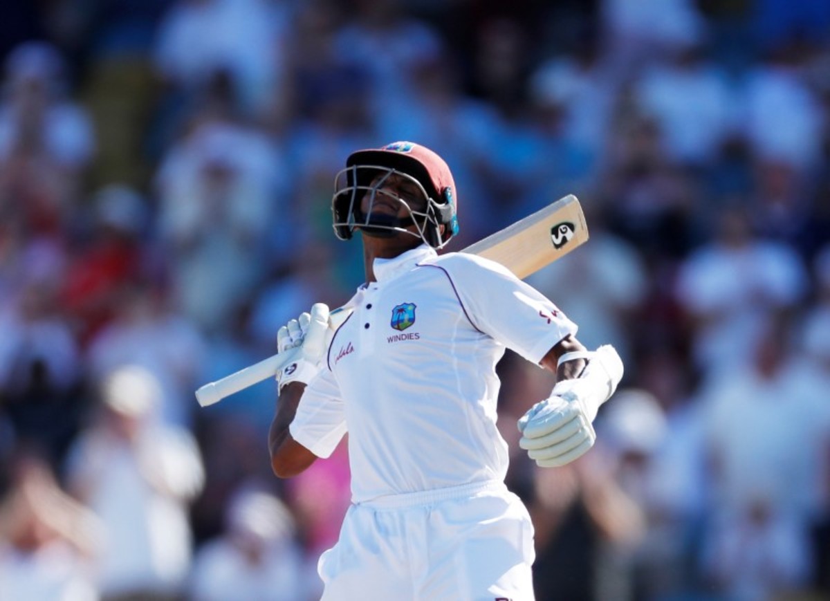 Cricket - West Indies v England - First Test - Kensington Oval, Bridgetown, Barbados - January 25, 2019 West Indies' Shane Dowrich celebrates reaching his century Action Images via Reuters/Paul Childs