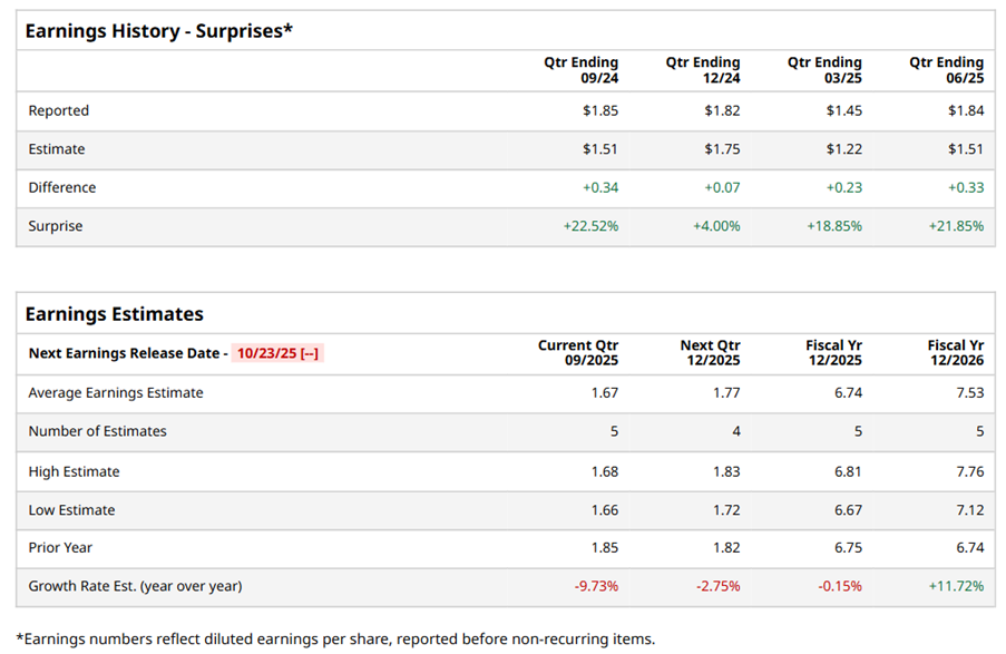 Exton, Pennsylvania-based West Pharmaceutical Services, Inc. (WST) designs, manufactures, and sells containment and delivery systems for injectable drugs and healthcare products. Valued at $19.6 billion by market cap, the company’s technologies include the design and manufacture of packaging components, research and development of drug delivery systems, and contract laboratory services, among others. The leading manufacturer of containment and delivery systems is expected to announce its fiscal third-quarter earnings for 2025 in the near term.