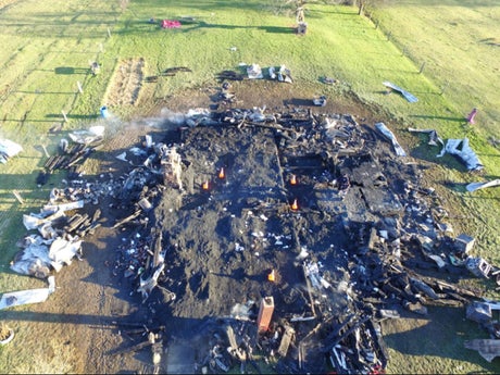 Images released by the sheriff’s office showed the two-storey house first built in 1888 completely destroyed by the fire set by Ms Myers.