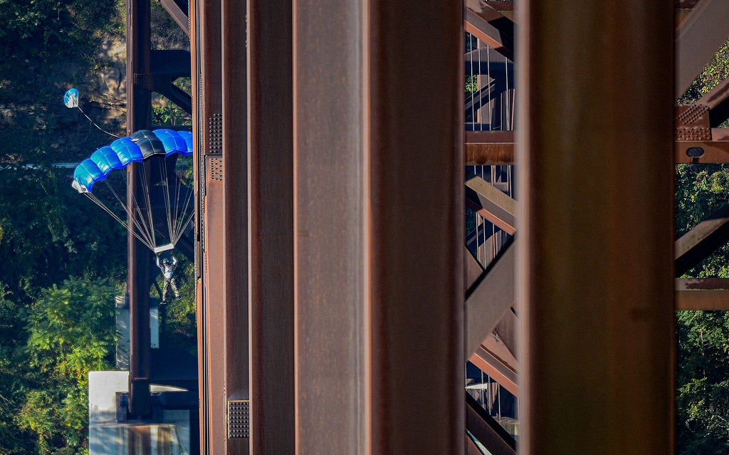 Tens of thousands of people typically show up from around the world on the third Saturday of October to watch parachutists, zip liners and rappellers on the 876-foot-high (267-meter) bridge. Bridge Day is the only day of the year that the bridge is open to pedestrian traffic.
