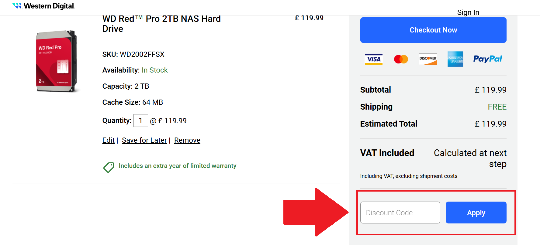 - Copy this code for later, then head over to the Western Digital website to browse products.