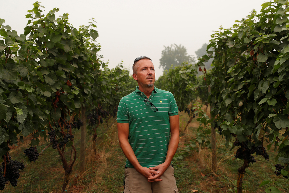 Heavy ground smoke clouded Hanson Vineyards in Oregon's picturesque Willamette Valley for more than a week following a Labor Day windstorm that kicked up wildfires across the western United States.