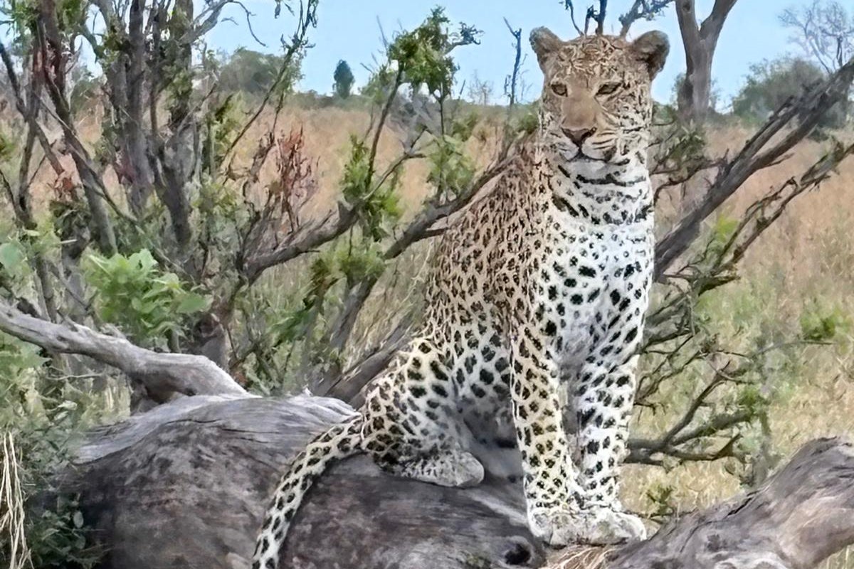 Bae does. She has been a full-time guide at our camp, the Atzaró Okavango in Botswana, for a year – and it’s clear she is the best there is. She’s certainly the most fearless. Bae motions to us to be quiet as she scans the horizon, her eyes moving like a tracker…. and then we see him. He is perfectly camouflaged, just five feet away from our vehicle: svelte, spotted and magnificent. The rosettes of his coat shine through the undergrowth as he gnaws at the remains of his prey. I, meanwhile, am simply relieved it’s not me clutched between his jaws.