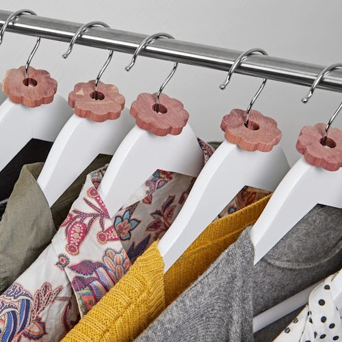 Amazon -Freshen your closet and keep bugs at bay by hanging these cedar wood flowers right on the coat hangers. They look cute, but bugs hate them and will stay away. They have a light cedar scent you can refresh by sanding them with the included sandpaper, and there are so many in the package that you will want to toss them into drawers, closets, and storage bins.