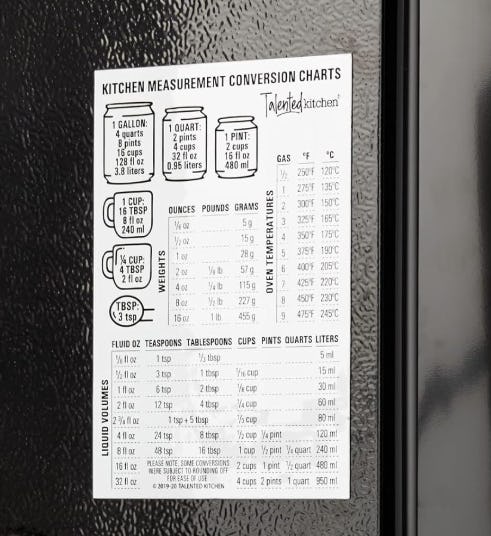 Amazon -Converting recipes just got a lot easier. Stick this conversion chart magnet to the fridge and glance to quickly convert ounces to tablespoons, cups, liters, and more. It converts oven temperatures, cups, quarts, and weights. And it is always within an easy glance, so you can do your conversions as you bake, even if your hands are covered in flour.